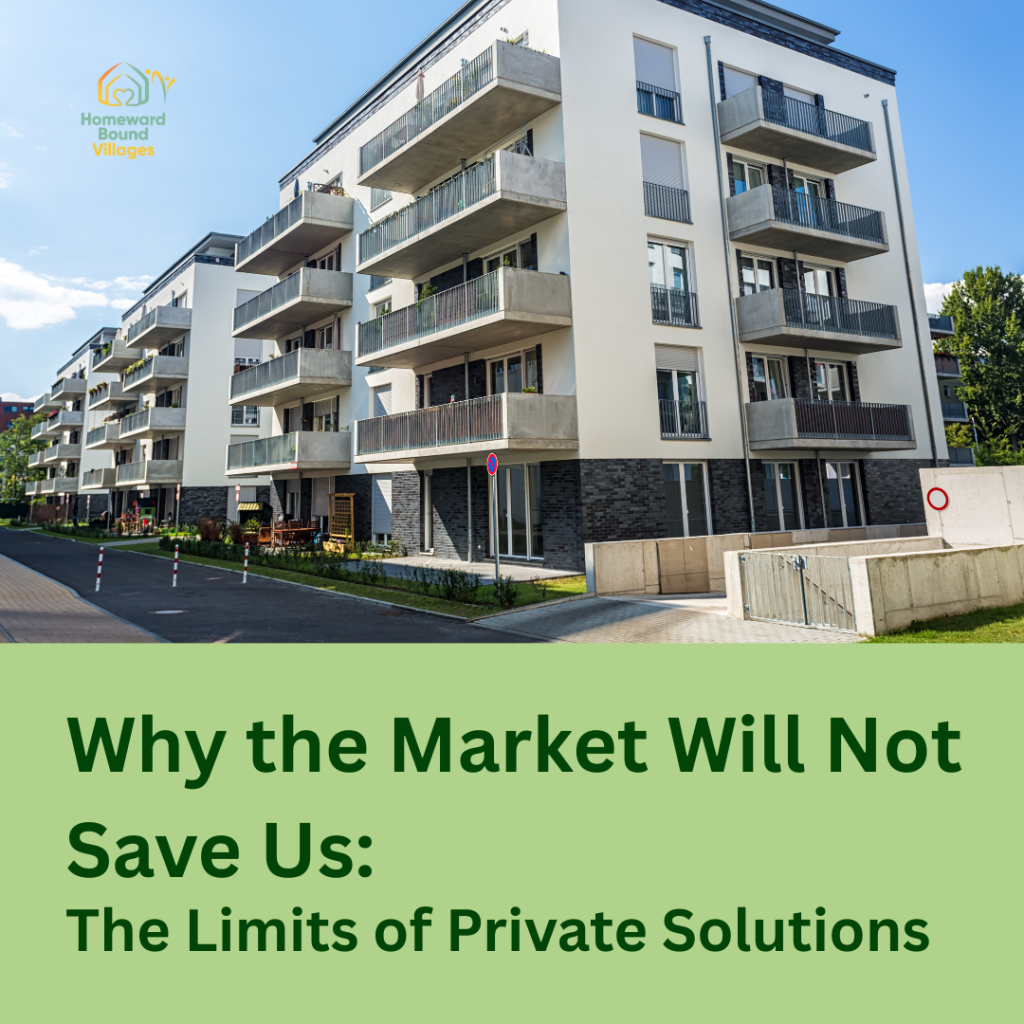 This is our third post in our series examining America’s housing crisis. We’ve explored housing types and how policy decisions created today’s emergency. Now we examine why market-based solutions alone cannot provide affordable housing for those who need it most.